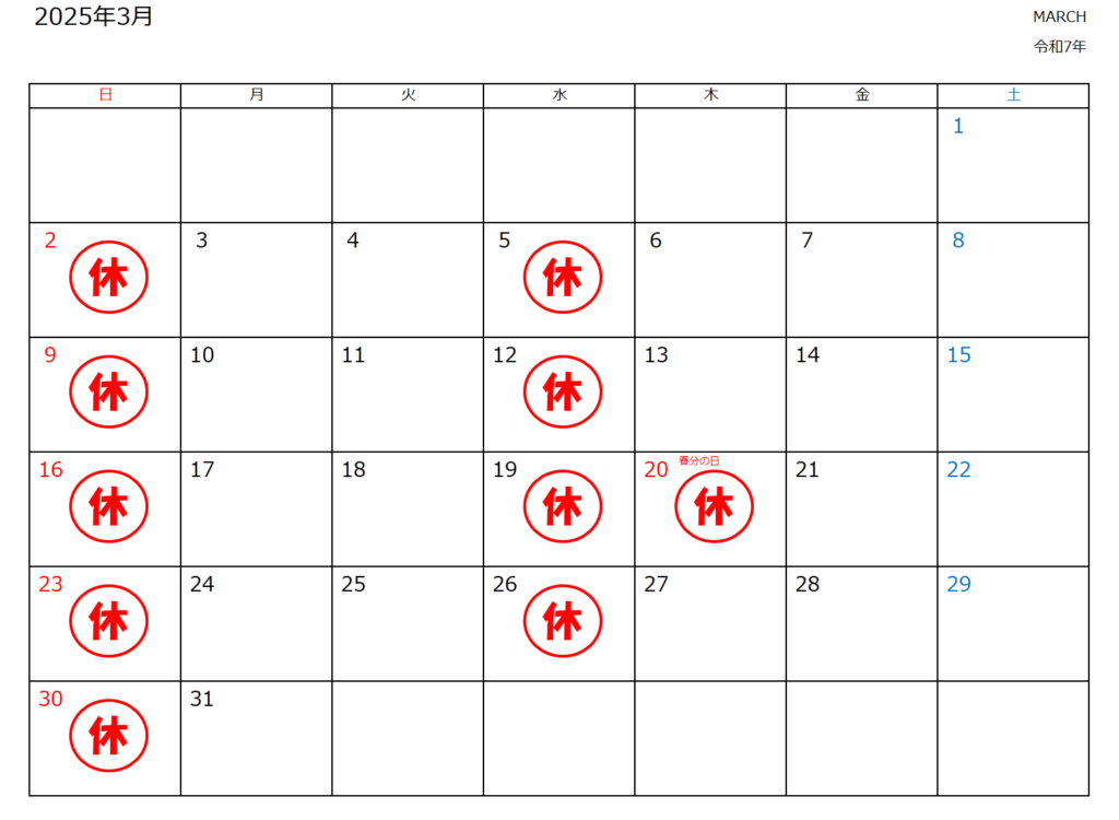 お知らせ 2025年3月休診日のお知らせ 2025.01.04 当院では下記日程を休診とさせていただきます。あらかじめご了承頂きます様、お願いいたします。 Tweet Share Hatena 2025年2月休診日のお知らせ 前の記事 2025年4月休診日のお知らせ 次の記事
